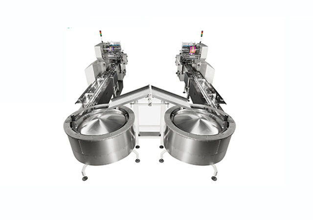 生產(chǎn)線上的物料輸送至圓盤內(nèi),通過旋轉(zhuǎn)將物料整理system后,完成高速包裝,生產(chǎn)能力300-450包/分鐘。